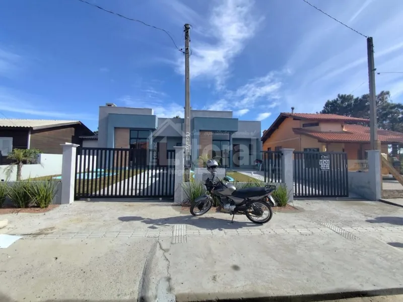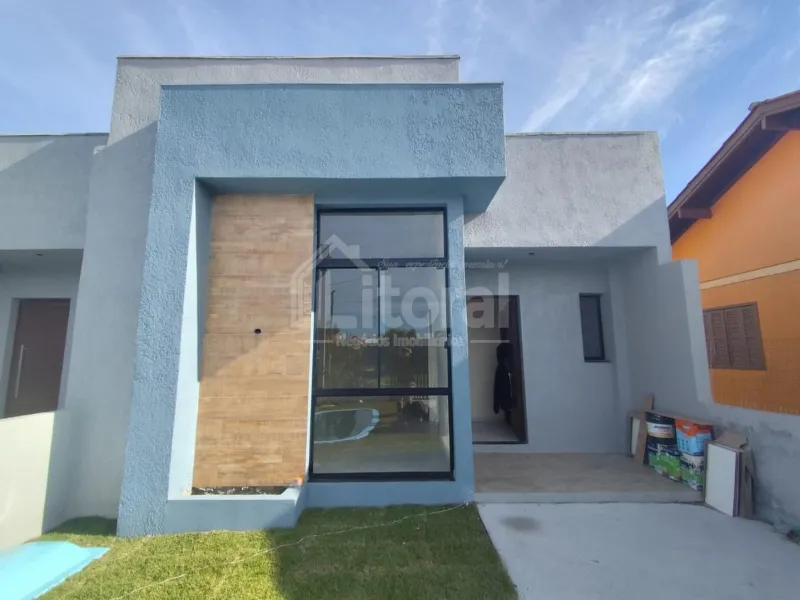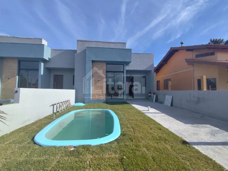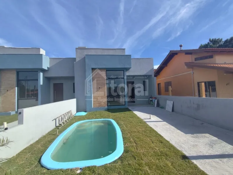 Li655 | Casa geminada nova, com ótimo padrão construtivo, localizada em região de moradia e veraneio no centro de Imbé. Com aproximadamente 84m² de área construída, o imóvel dispõe de sala e cozinha integradas, lavabo, lavanderia, 02 suítes, pátio nos fundos e pátio na frente com piscina e vaga para carro.