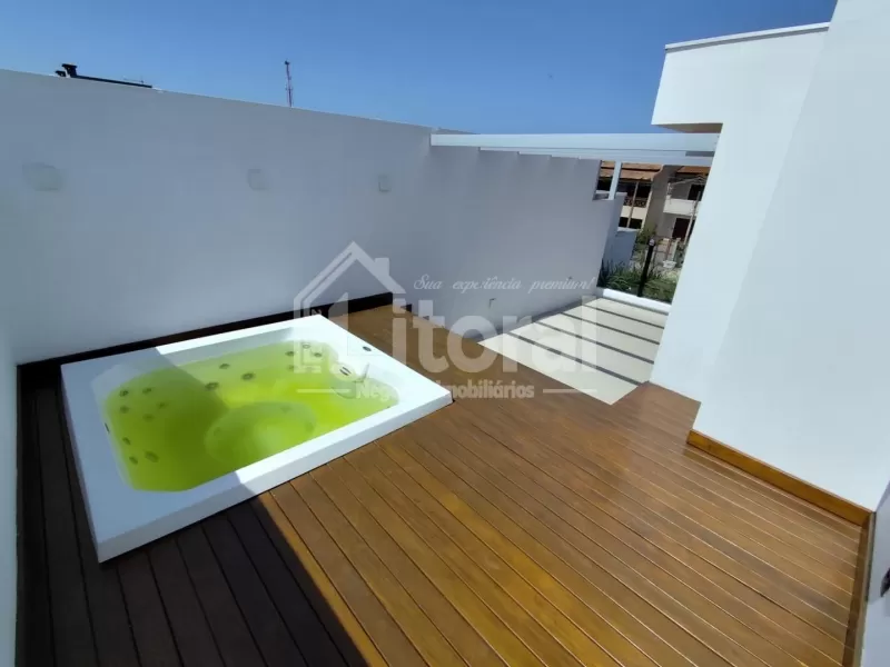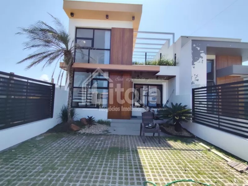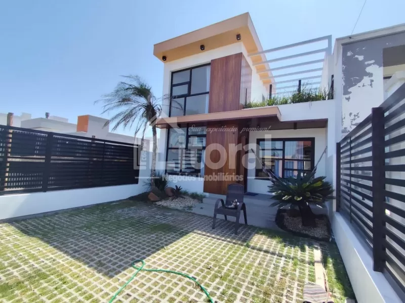 Li688 | Duplex diferenciado, com padrão construtivo moderno, localizado em região de moradia e veraneio, no centro de Imbé. Com aproximadamente 150m² de área construída, o primeiro andar é composto por sala de estar, jantar e cozinha em ambiente integrado, banheiro social, 03 dormitórios sendo 01 suíte, e pátio na frente com vaga para carro. O andar superior dispõe de mezanino com sala de estar e lavabo, além de terraço com ofurô e deck de madeira.
