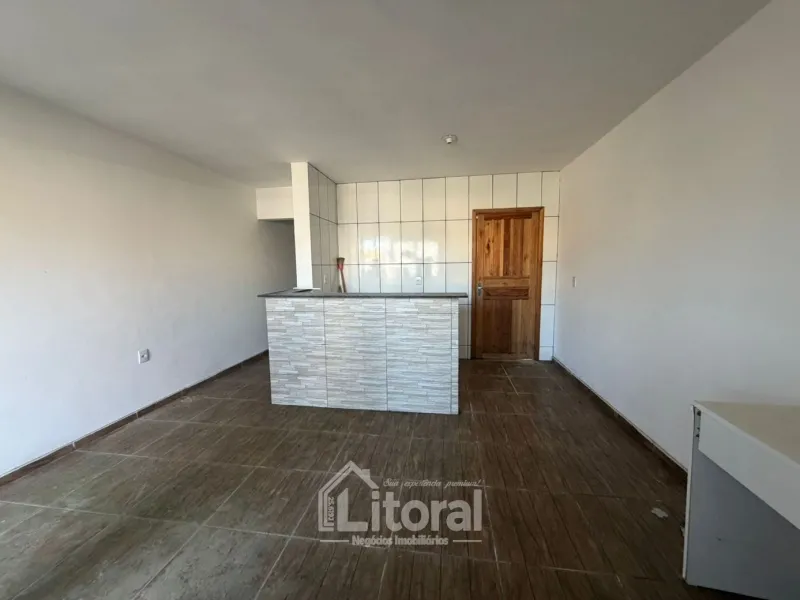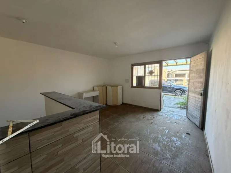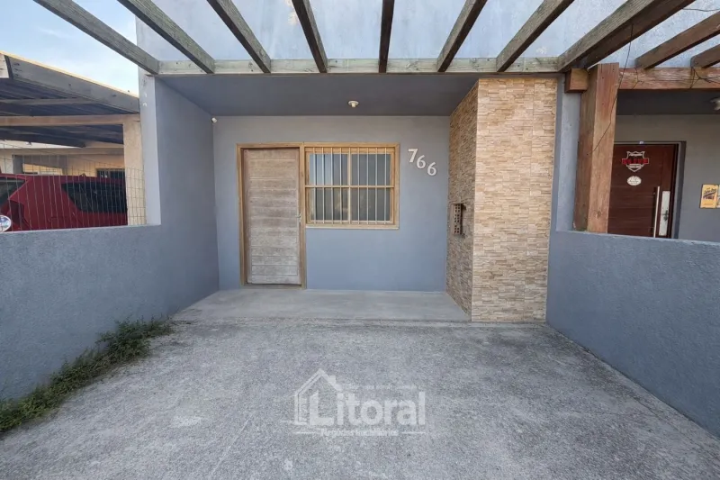 Li1163 | Casa geminada localizada próxima do mar, em balneário de Imbé. Com 68m² de área privativa, o imóvel dispõe de sala de estar e cozinha integradas, banheiro social, 02 dormitórios, poço de luz com lavanderia e vaga para 01 carro.