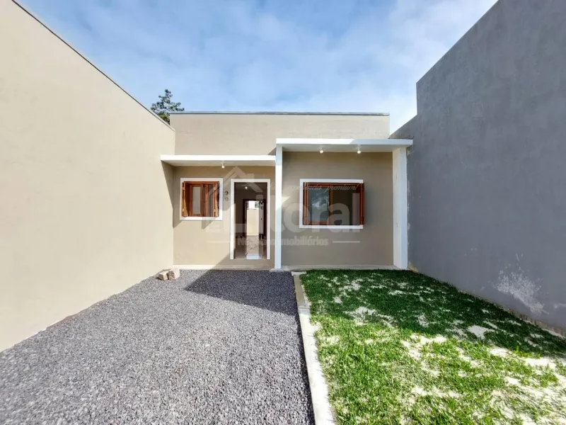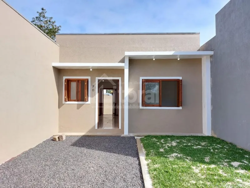 Li1229 | Residência de alvenaria composta por sala de estar e cozinha integradas, banheiro social, 02 dormitórios, área de serviço com churrasqueira e vaga de estacionamento para 02 veículos.