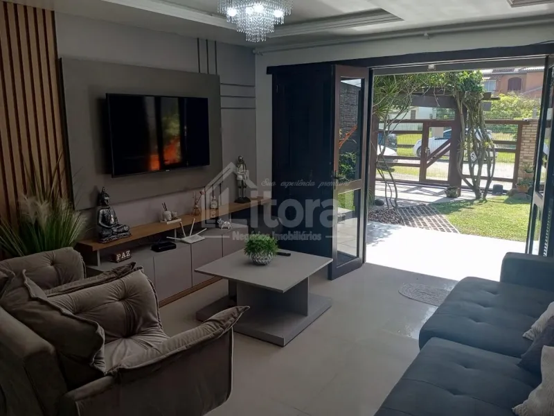 Li384 | Residência de alvenaria composta por sala de estar e cozinha integradas, banheiro social, 03 dormitórios sendo 01 suíte, lavanderia e garagem para 02 veículos. Anexo com 01 dormitório, banheiro social, despensa e espaço gourmet com churrasqueira.