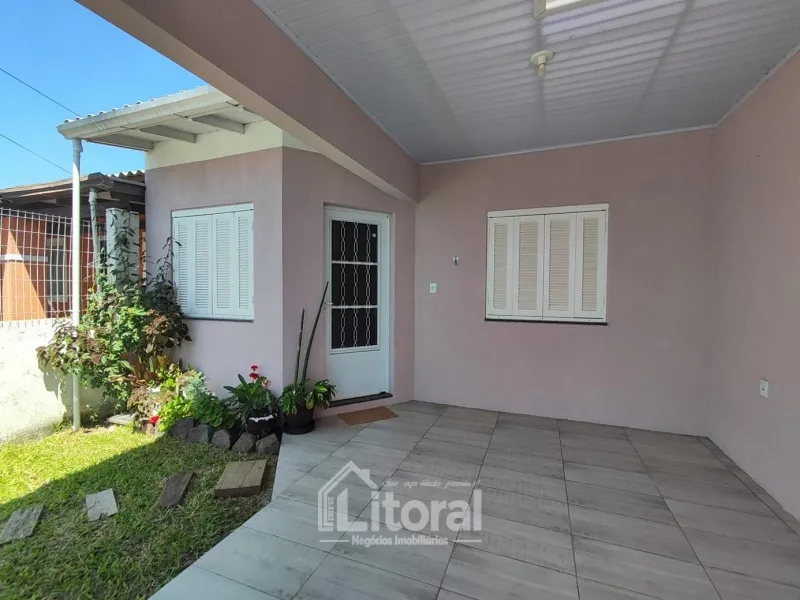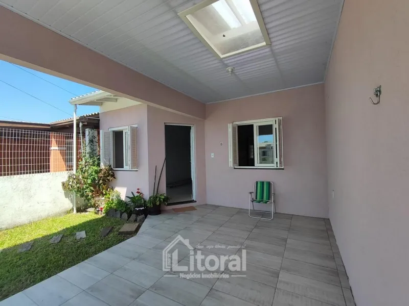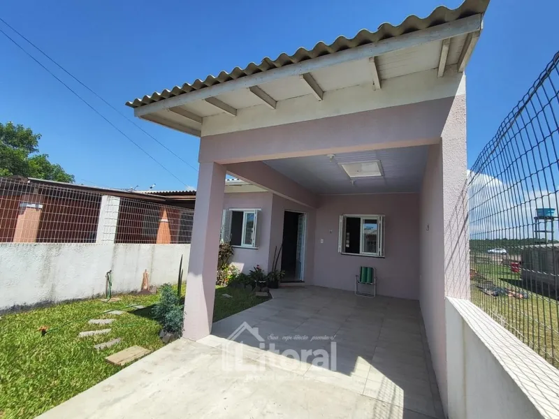 Li825 | Imóvel geminado nunca habitado, composto por sala de estar e cozinha integradas, lavanderia, banheiro social, 02 dormitórios, área coberta nos fundos, com churrasqueira e vaga coberta para veículo na frente.