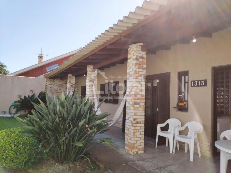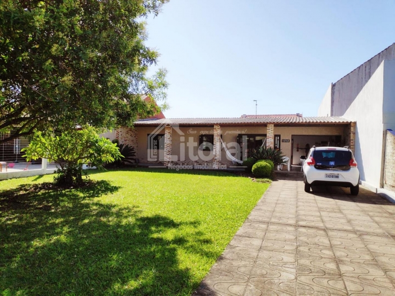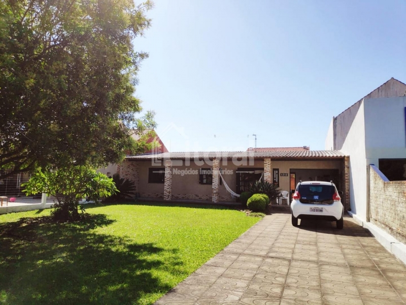 Li433 | Residência de alvenaria composta por ampla garagem com churrasqueira, sala de estar, cozinha, 02 banheiros, 03 dormitórios, lavanderia e despensa.