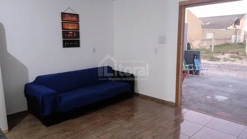Li1163 | Casa geminada localizada próxima do mar, em balneário de Imbé. Com 68m² de área privativa, o imóvel dispõe de sala de estar e cozinha integradas, banheiro social, 02 dormitórios, poço de luz com lavanderia e vaga para 01 carro.