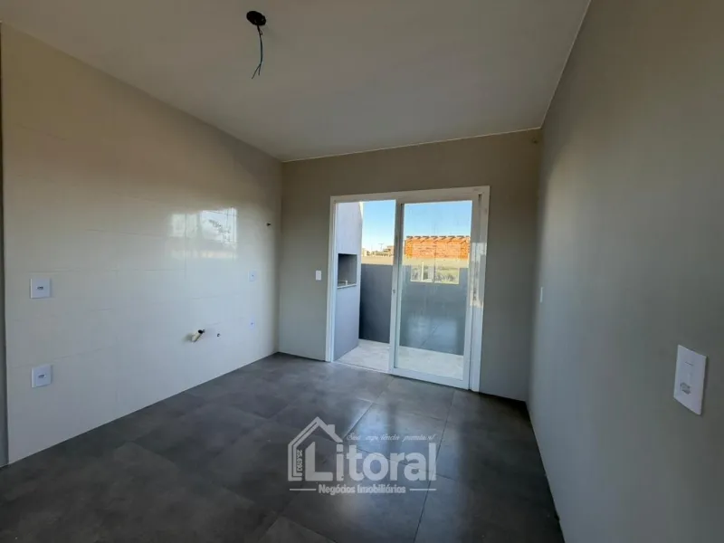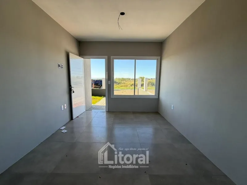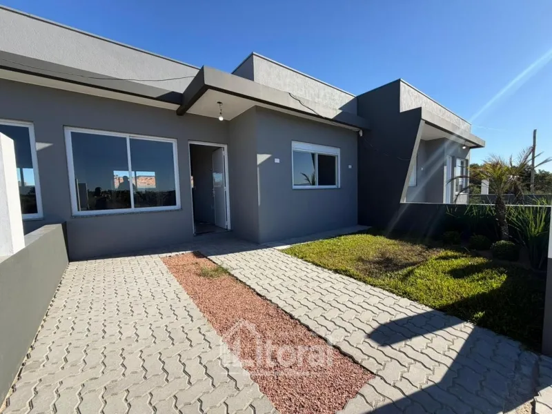 Li604 | Casa geminada nova, nunca habitada, composta por sala de estar e cozinha integradas, churrasqueira externa, banheiro social, 02 dormitórios sendo 01 suíte, área de serviço e vaga de estacionamento para veículo.