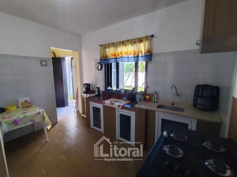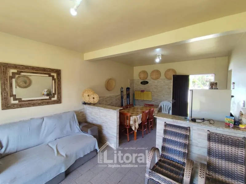Casa semimobiliada, com forro de laje, localizada à 850 metros do mar, próximo à avenida principal, composta de sala de estar e sala de jantar integradas, cozinha, banheiro social, 03 dormitórios, e pátio na frente e nos fundos.